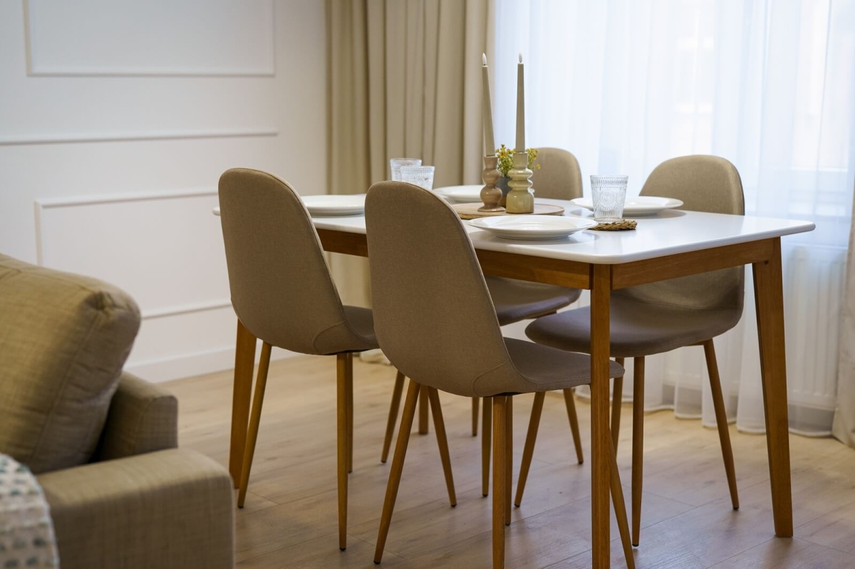 To mieszkanie jest idealnym połączeniem klimatu kamienicy i nowoczesnego wykończenia. Zachwyca już od wejścia: wysokie sufity, duże okna oraz elegancka sztukateria nadają wnętrzu ponadczasowy charakter, przestrzeń i światło. Całość została przygotowana w spójnym stylu, z dbałością o detale i funkcjonalność — bez przypadkowych rozwiązań.