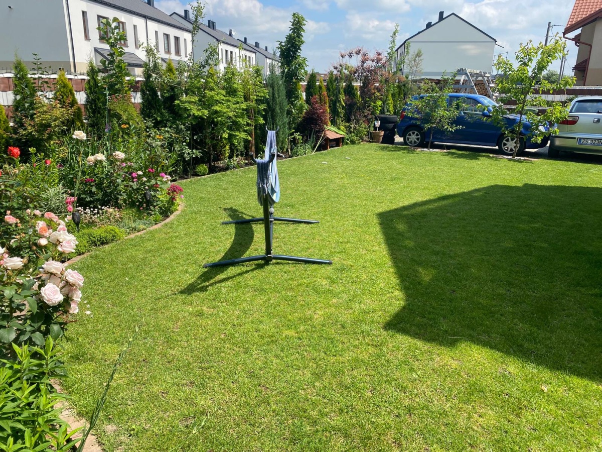 Posesja jest ogrodzona (brak jedynie bramy-wszystkie instalacje podprowadzone) i posiada podjazd na conajmniej trzy samochody. Niewątpliwym walorem jest piękny i zadbany ogród który jest oczkiem w głowie Pani domu. Znajdziemy tam piękne róże, kwitnące krzewy, drzewka owocowe oraz inne rośliny i kwiaty na rabatach. Taras usytuowany z tyłu domu pośród drzew co daje poczucie prywatności i spokoju. Osobno niewielka drewutnia. Garaż w bryle budynku z napięciem 440V oraz woda i prąd wyprowadzona na zewnątrz budynku do ogrodu. W ogrodzie znajduje się również rozprowadzona instalacja pod oświetlenie ogrodowe włączane z domu oraz podziemny zbiornik na deszczówkę (2000l)z pompą – przydatna do podlewania ogrodu. Monitoring posesji z poziomu aplikacji na urządzeniu mobilnym.