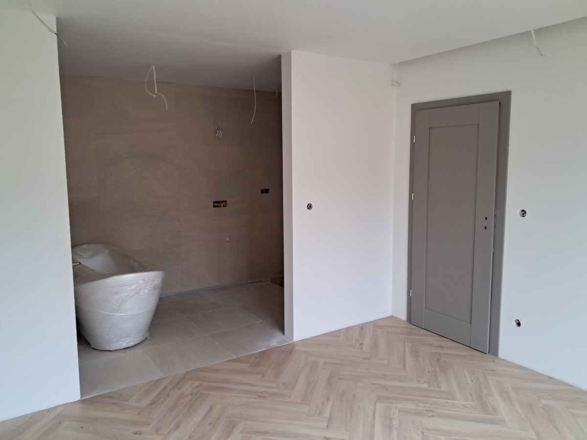 Na tą chwile po wstawieniu mebli dom nadaję się do zamieszkania. Łazienki zostały wykończone wysokogatunkowymi płytkami, na podłogach zostały położone również wysokogatunkowe panele oraz zostały zamontowane drzwi wewnętrzne marki DRE.