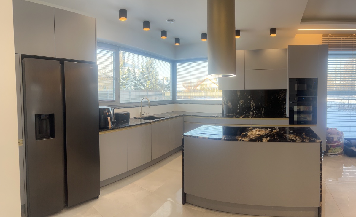 * kuchnia zaprojektowana przez projektanta na zamówienie (szafki z cichym domykiem)