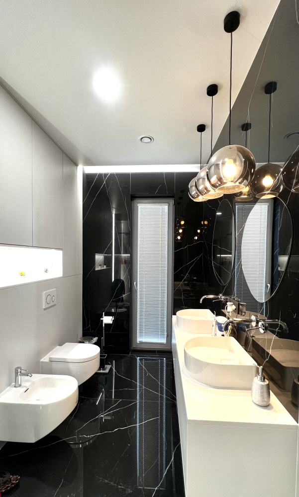 * w łazience płytki wielkoformatowe 240cm