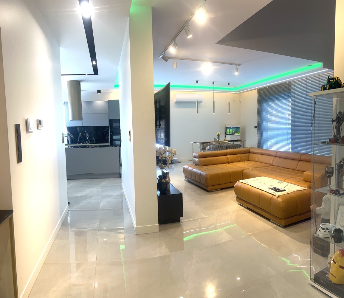 * podwieszane sufity z oświetleniem LED kolor oraz normal – salon, kuchnia, sypialnia, łazienki, sień