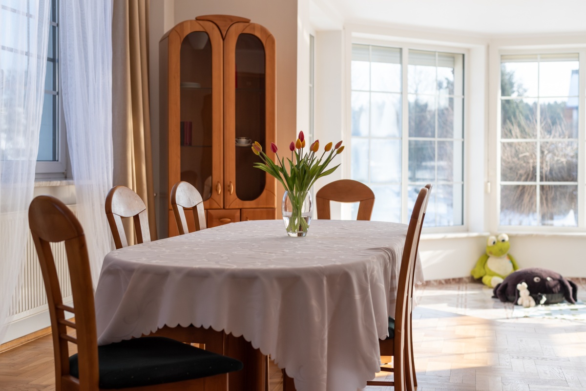 Dom o powierzchni użytkowej 278,3 m², wykonany z wysokiej jakości materiałów budowlanych i wykończony w wysokim standardzie. Podłogi oraz schody wykończone naturalnym drewnem dębowym. Przemyślany układ pomieszczeń gwarantuje komfort i funkcjonalność, a duża działka daje wiele możliwości aranżacyjnych. Dostępny jest także światłowód zapewniający możliwość efektywnej pracy jak i nieograniczonej rozrywki.