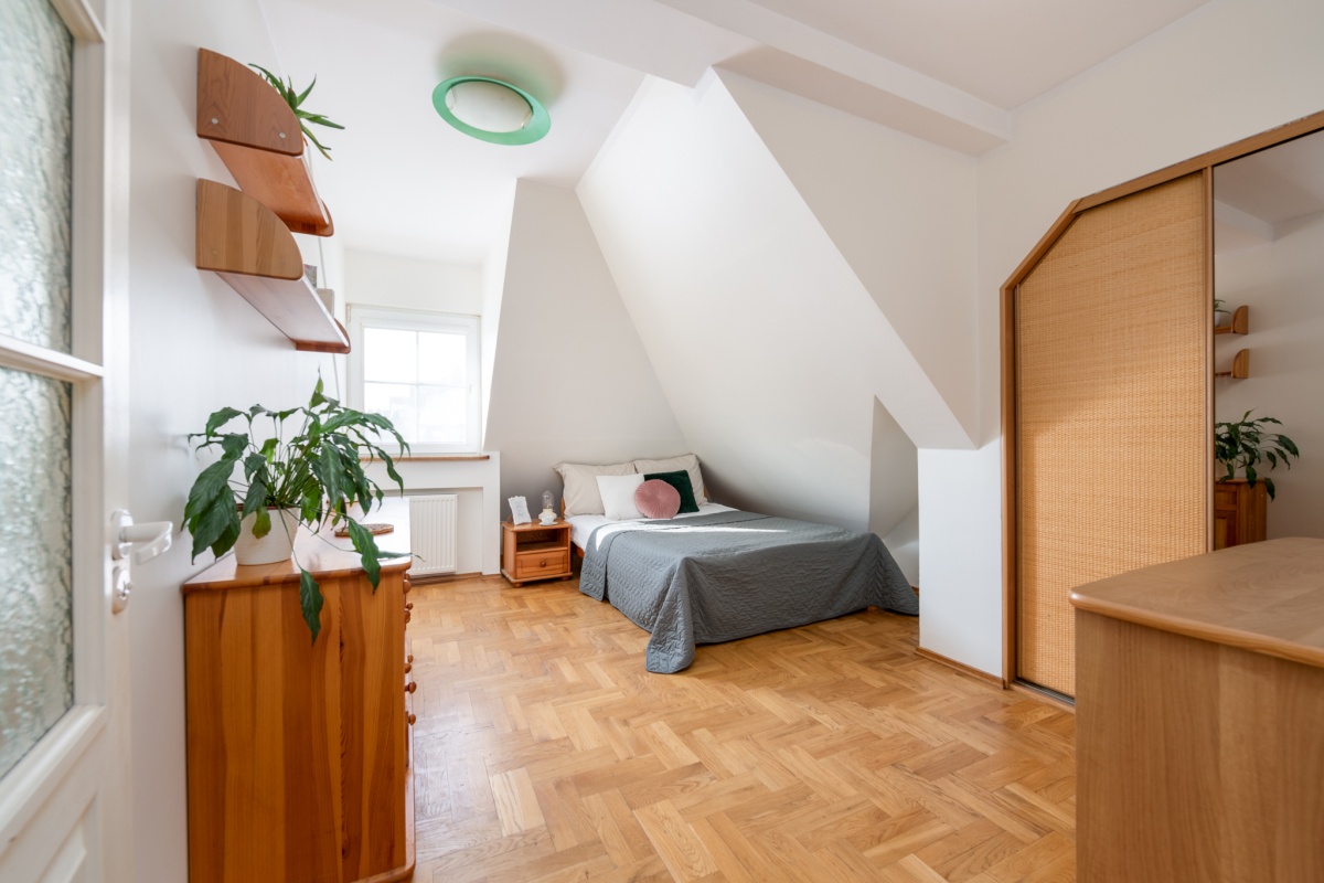 Sypialnia: 13 m² z dodatkową przestrzenią (poddasze: 11 m²)