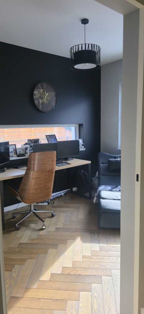Na tym poziomie znajduje się również gabinet – komfortowa przestrzeń do pracy z domu, prowadzenia spotkań online lub stworzenia prywatnej biblioteki.