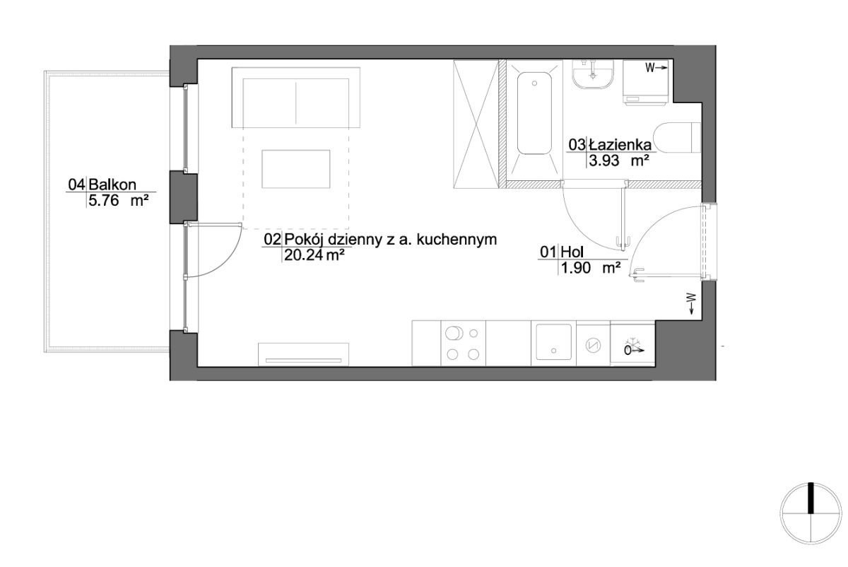 – Balkon 5,8 mkw.