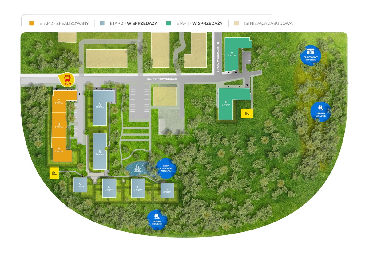 Funkcjonalna kawalerka o powierzchni użytkowej 26,07 mkw., znajdująca się na II piętrze w eleganckim trzypiętrowym apartamentowcu wybudowanym przez dewelopera Robyg w ramach osiedla Sady Ursynów w dzielnicy Ursynów na pograniczu z Mokotowem przy ul. Koprowskiego, w rejonie ulic Kłobuckiej i Wyczółki. Budynek charakteryzuje się zgodną z aktualnymi trendami architekturą, wysokim standardem wykończenia części wspólnych oraz nowoczesnymi rozwiązaniami technicznymi (m. in. system Smart Home).