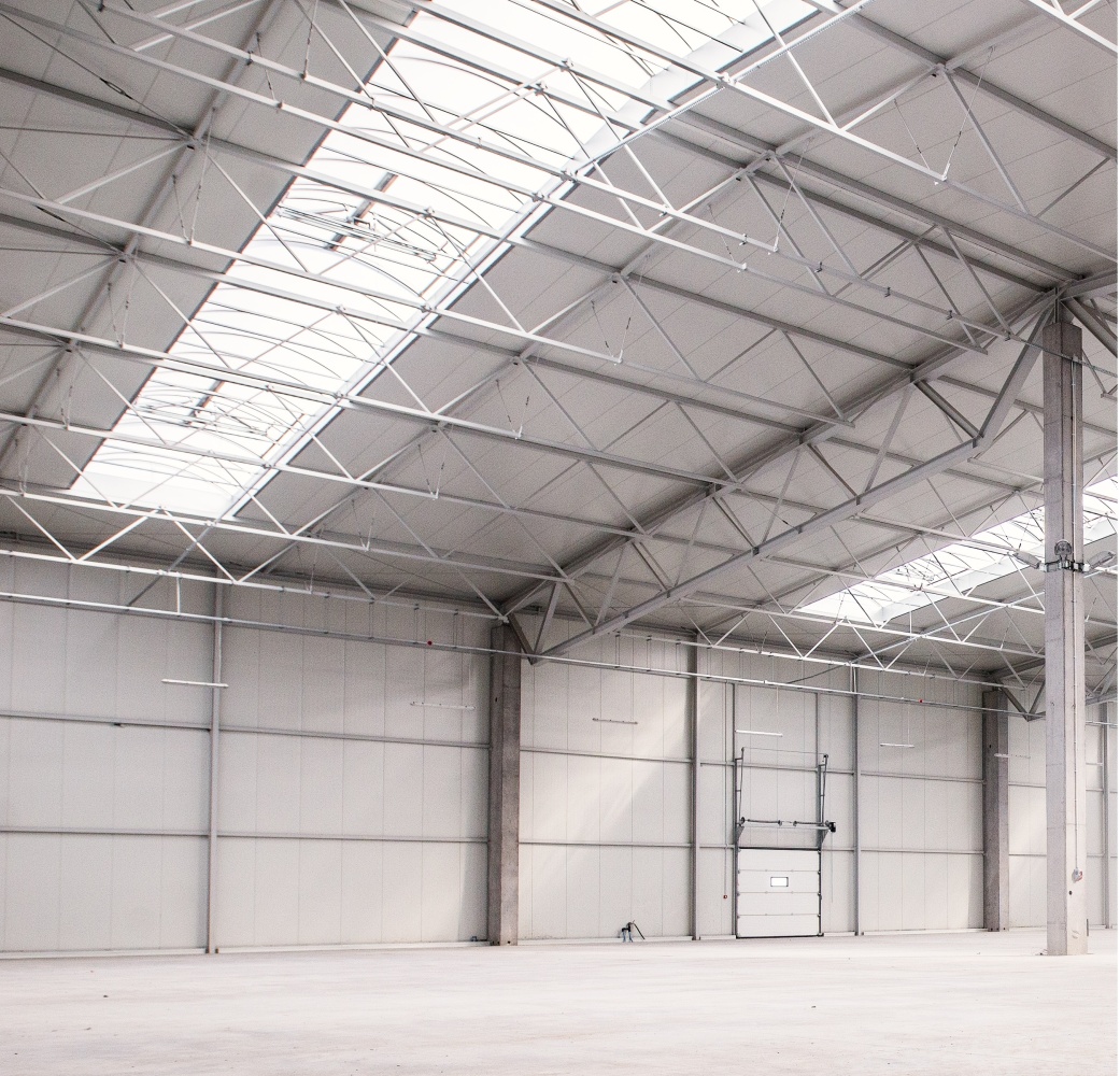 Wysokość w świetle konstrukcji mierzona od posadzki do najniższego punktu głównych dźwigarów dachowych tj. wysokość użytkowa hali: 8,50 m.