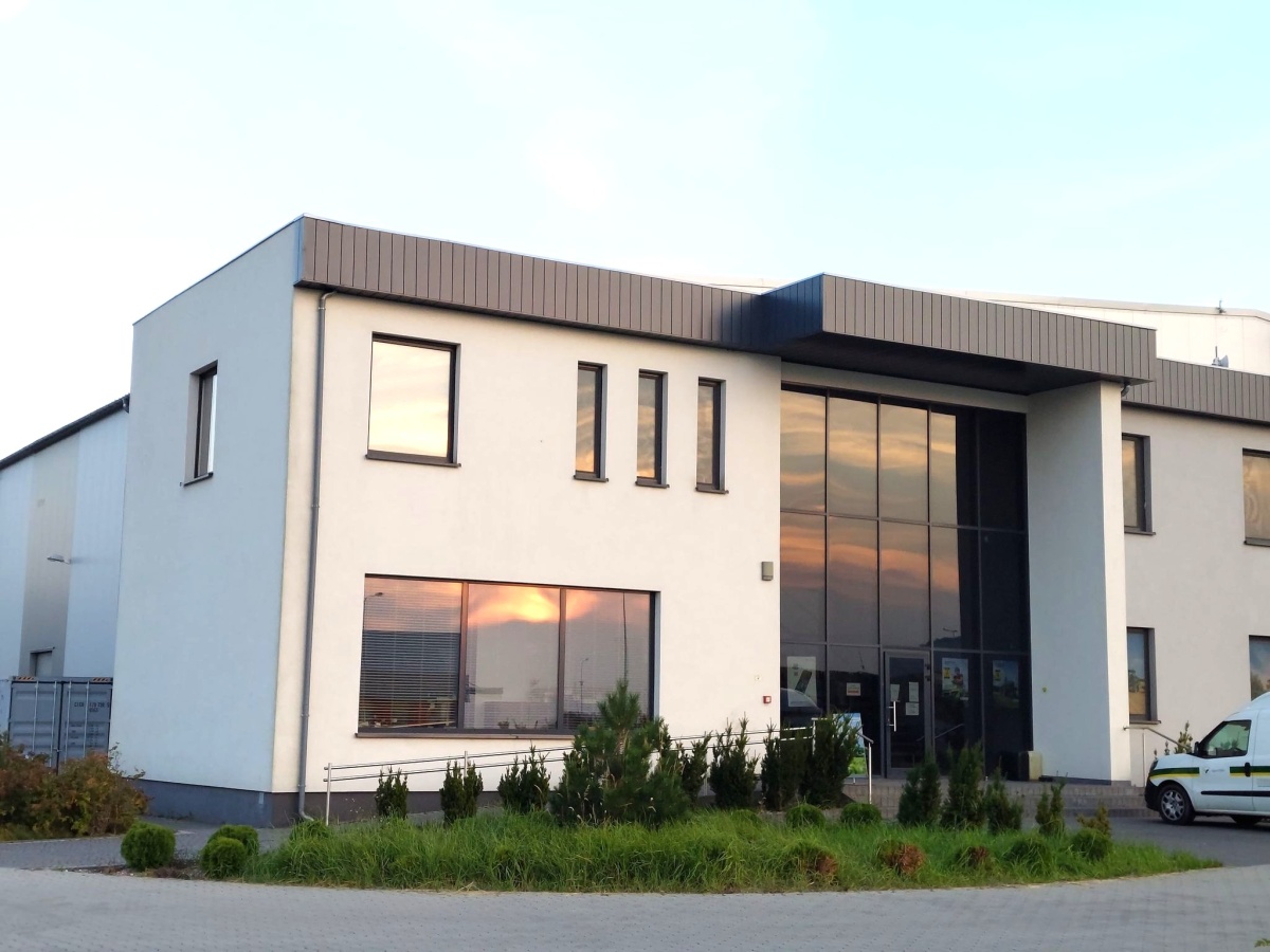 Inwestycja zlokalizowana jest w Pobiedziskach przy ulicy Partnerskiej, na działce nr 112/14 na terenie przeznaczonym w Planie Miejscowym pod aktywizację gospodarcza. Przedmiotowa działka ma powierzchnię 40,434 m2. Zaprojektowany obiekt w zasadniczej części mieszczącej biura oraz części socjalnej jest dwukondygnacyjny, natomiast przyległa do niego hala produkcyjno – magazynowa jest jednokondygnacyjna. Budynki są niepodpiwniczone, kryte dachami dwuspadowymi (5st. pochylenia). Na działce wydzielono tereny zielone oraz 41 miejsc parkingowych (w tym 3 dla niepełnosprawnych) zlokalizowanych wzdłuż wewnętrznych dróg. Na części zaprojektowana została utwardzona nawierzchnia zapewniająca możliwość użytkowania przez pojazdy ciężkie obsługujące magazyny.