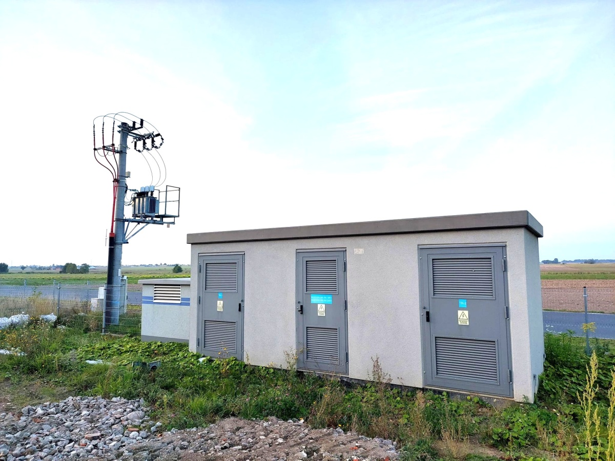 Samodzielna stacja transformatorowa o mocy 630 kVA, z możliwością przyłączeniową do 1000 kW ( w jednej komorze), dwukomorowa co daje maksymalną możliwość rozbudowy do 2000 kW.