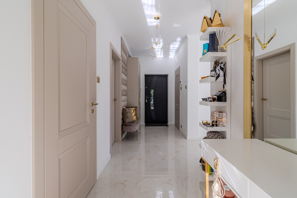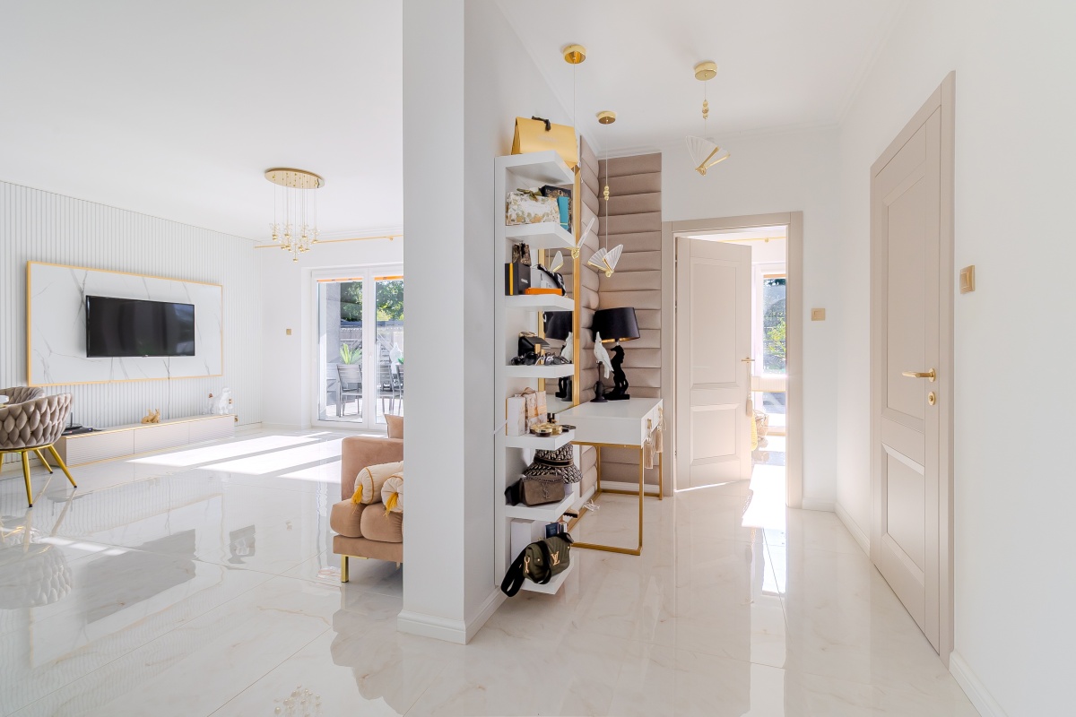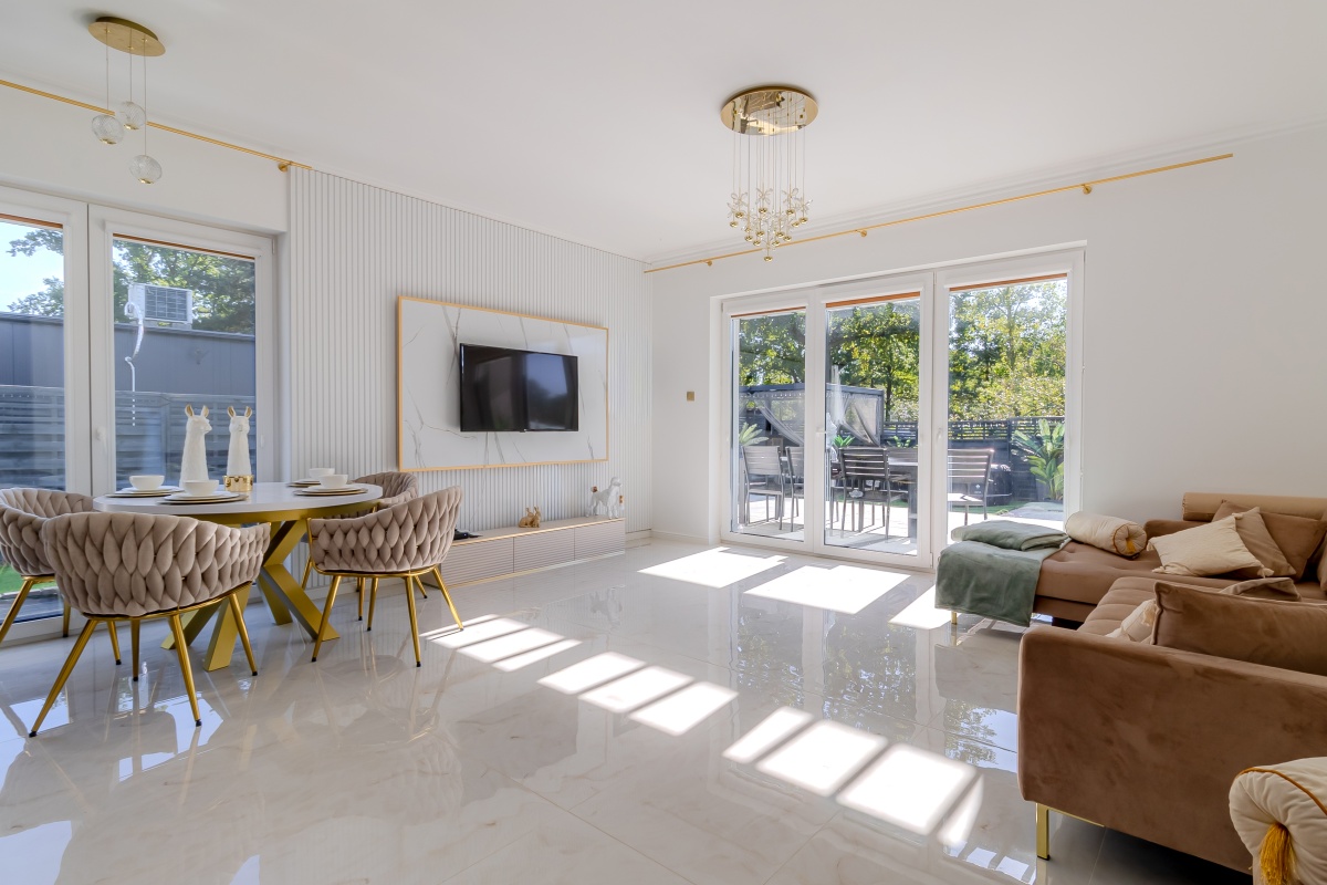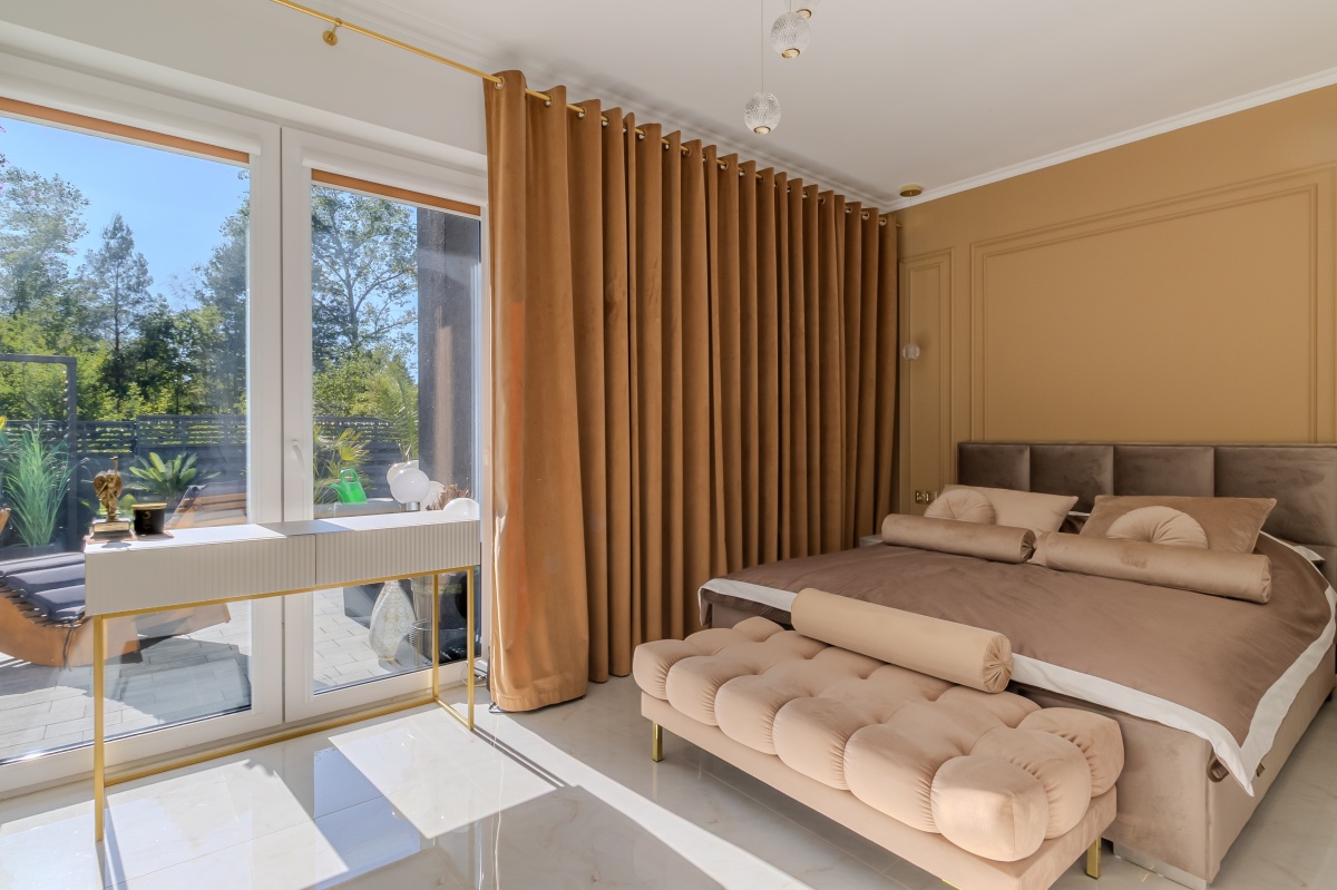 Dom wykończony w 2024 roku z najwyższej jakości materiałów, nietuzinkowy styl z dbałością o detale, wnętrze stworzone ze smakiem i delikatnością stonowanych kolorów, bieli, beżu i złota. Gotowy na Twoje potrzeby bez dodatkowych nakładów.