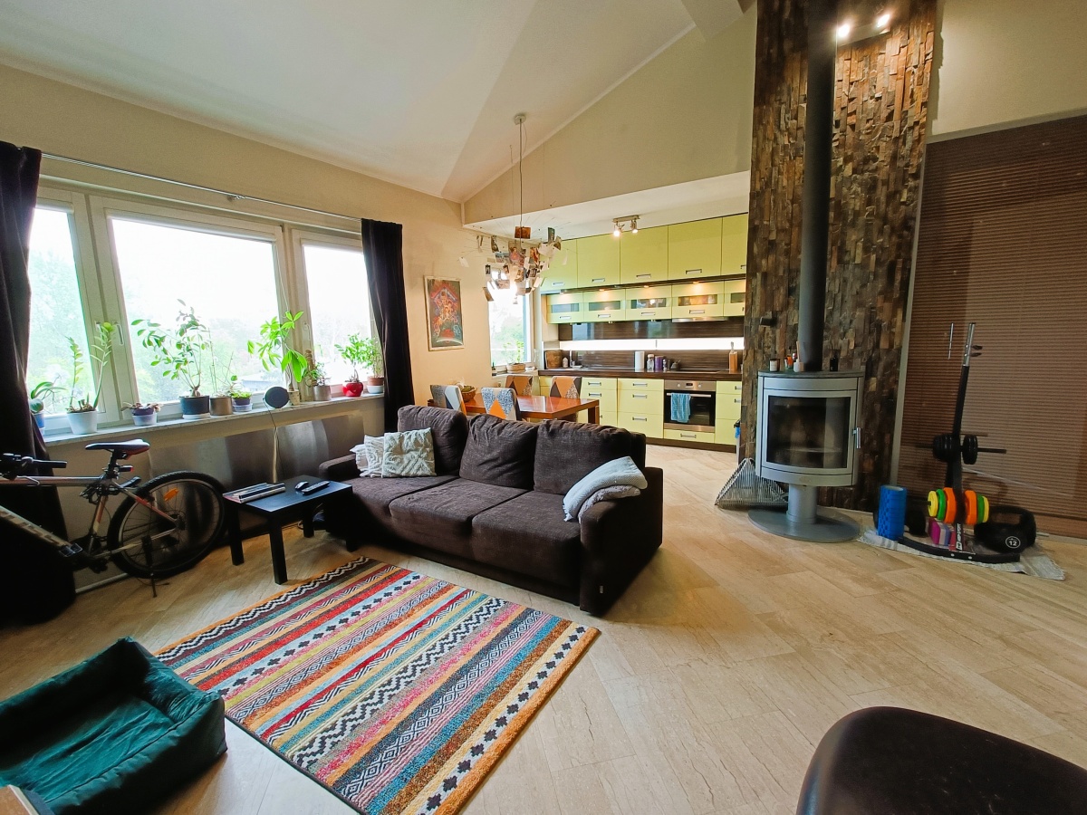 Kuchnia w pełnej zabudowie i wyposażona w sprzęt AGD dobrej klasy. Urządzenia mają już kilkanaście lat ale są absolutnie w dobrej kondycji. W wyposażeniu kuchni są: piekarnik, lodówka, płyta indukcyjna, mikrofalówka, zmywarka.
