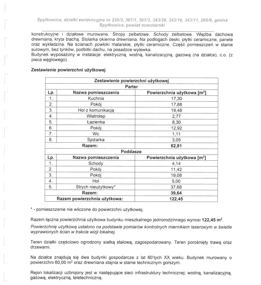 Przedmiotem sprzedaży jest udział w wysokości 5/8 części w prawie własności zabudowanej nieruchomości gruntowej położonej w miejscowości Spytkowice, gmina Spytkowice, powiat nowotarski, województwo małopolskie.