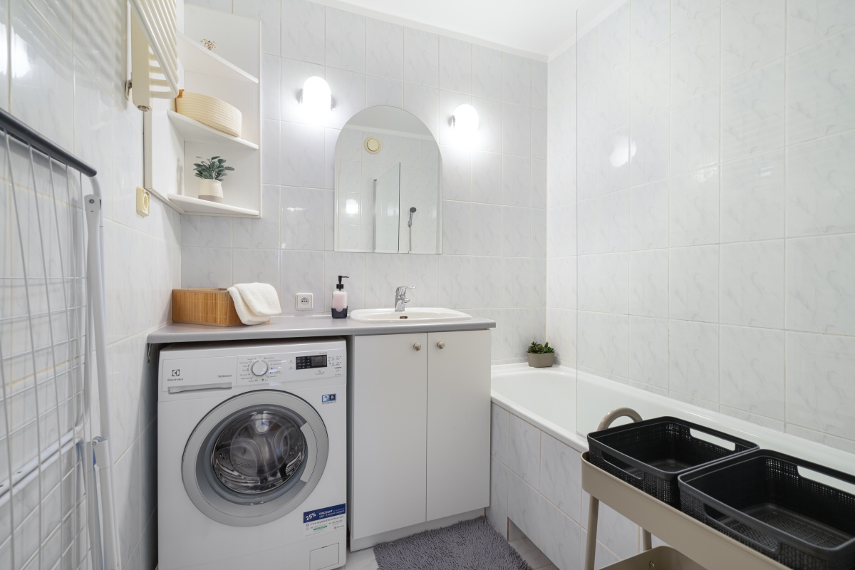 • Additionally, the apartment has a washing machine, fridge, kettle, gas stove, microwave, vacuum cleaner, ironing board, clothes dryers, coffee maker