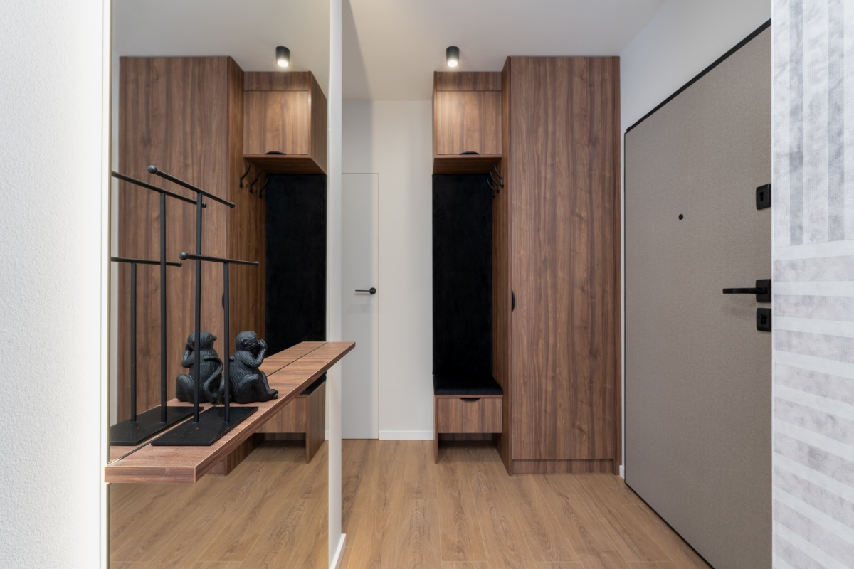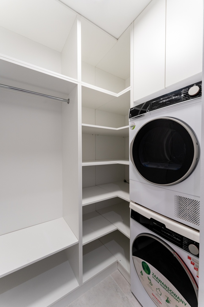 Wygodna i praktyczna osobna garderoba połączona z pralnią, zapewniająca idealny porządek.