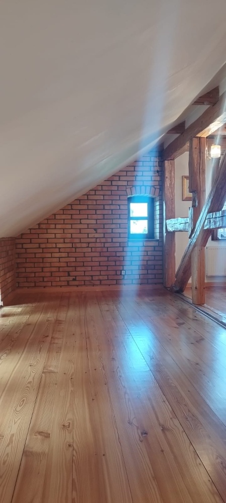 Drewniane podłogi (parkiet), kuchnia i piwnica – płytki