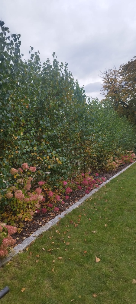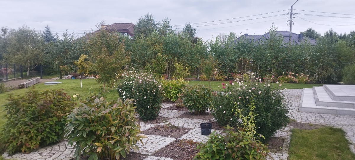 Działka ogrodzona (front: metaloplastyka, reszta: siatka), liczne nasadzenia