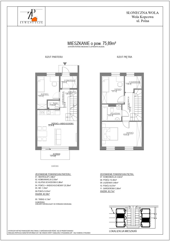 W cenie: 2-poziomowe mieszkanie, ogródek, taras oraz strych.