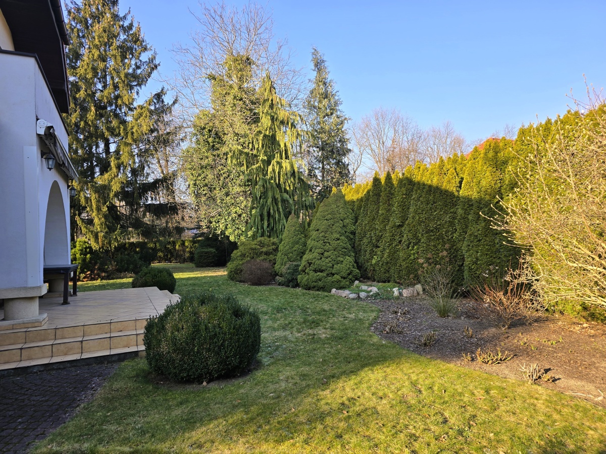 Działka ma optymalną wielkość i jest bardzo ustawna (30,5m x 38,5m) co gwarantuje nam przyjemną przestrzeń. Pomimo posadowionego okazałego domu pozostał do użytku wspaniały ogród, bardzo przemyślanie zagospodarowany, częściowo zadrzewiony, z licznymi nasadzeniami, kompostownikiem i wygodnie usytuowaną drewutnią.