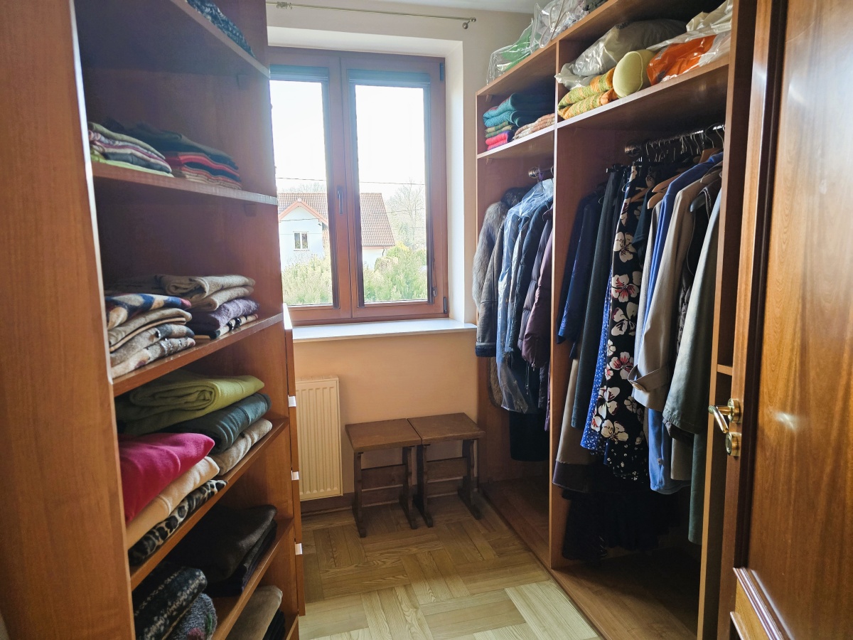 – druga również duża (5,65m2), oddzielna, zamykana garderoba z oknem na piętrze